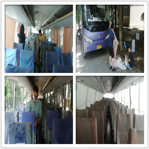 活动中,办公室全体党员同志从小事做起,从身边实事做起,通过制作校车发车时刻提示牌,让教职工乘客能提前把握各时刻校车发车时间信息精准乘车;完成对4辆教职工通勤车104个车用座位头套和101块车用窗帘进行拆卸、消毒清洗并重新安装,保证车内饰物的卫生整洁,为教职工营造舒适的乘车环境;完成对4辆教职工通勤车配齐应急医疗急救箱并更新医疗急救箱内应急医疗物资(包括速效救心丸、藿香正气液、消毒酒精、碘伏、棉签绷带、口罩等),保证教职工乘车时迫切情况下能紧急使用医疗物资。通过活动把我部门党员同志在党史学习教育的理论学习与实践行动相结合,切实增强我部门党员同志服务意识,提升教职工通勤校车服务水平。