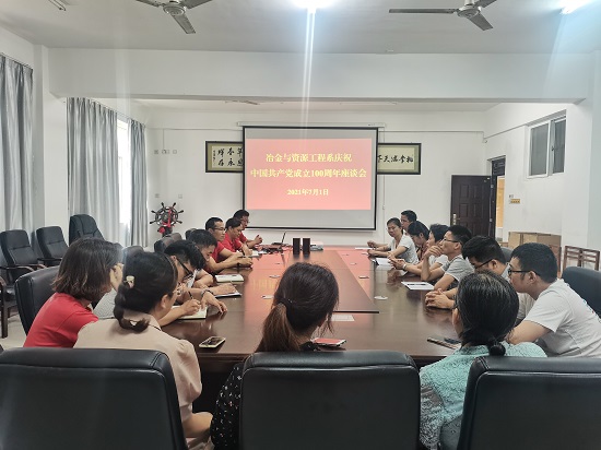 7月1日,伟大光荣正确的中国共产党迎来了百年华诞。冶金与资源工程系在探源楼5207会议室组织师生党员和入党积极分子观看庆祝中国共产党成立100周年大会,并组织教师党员就学习领会习近平总书记在大会上发表重要讲话精神进行座谈交流。