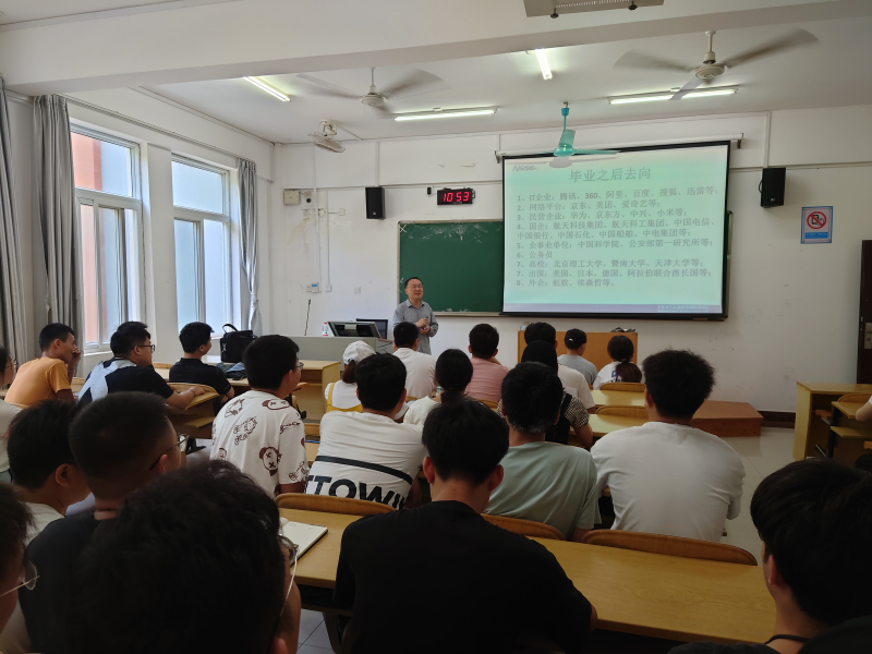 于强老师为同学们介绍了空间科学与应用研究中心的历史发展,讲解了一些研究和创造的成果,普及了相关科学知识,引发了同学们的学习兴趣。于强老师还为在场学生介绍了中国科学院大学研究生招生相关事宜,鼓励同学们主动学习,刻苦学习,努力进行自我提升。最后,于强老师为有实习准备的学生推荐了数据科学研究、企业服务等行业的工作岗位。