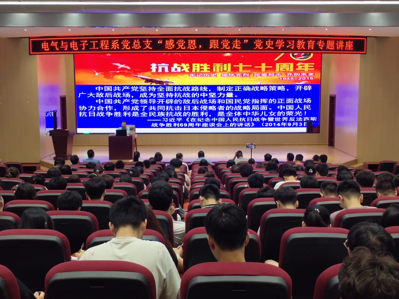 为全面深入学习中国共产党的百年奋斗史,引导教育广大党员深入了解党的优良传统和作风,深刻感悟和自觉践行党的初心和使命,切实增强“四个意识”、坚定“四个自信”、做到“两个维护”,5月12日,电气与电子工程系邀请扶绥中学高级教师、广西优秀历史教师、崇左市学科带头人邓超权老师到空港校区开展“感恩党,跟党走”党史学习教育专题讲座,主题为《坚定理想信念•奋发成长报国——学习中国共产党百年奋斗史》。电气与电子工程系党总支全体师生党员、入党积极分子及学生骨干参加讲座。