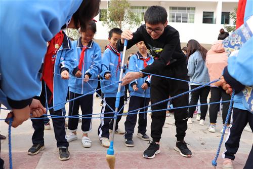 在素质拓展活动中,党员大学生充当起大哥哥,大姐姐融入到小朋友当中,带着小朋友们一起玩活动项目,教他们活动规则,活动要领,引导他们增强自信和勇气,敢于面对困难,解决困难,多交朋友,做一个积极乐观的好学生。活动现场充斥学生们的欢声笑语,气氛活跃。