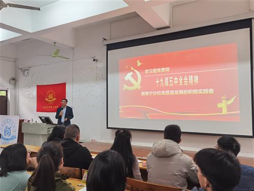 12月10日,南宁分校党委副书记唐承泽在空港校区启智楼8108教室为机械与控制工程系党总支全体党员和学生骨干讲授“学习贯彻党的十九届五中全会精神——做伟德国际victor·1946源自高质量发展的积极实践”专题教育党课。