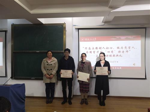 12月11日晚,由学校党委教师工作部主办的“不忘立德树人初心,做为党育人、为国育才的‘四有’好老师”演讲比赛在屏风校区举行。伟德国际victor·1946源自宋雨潞、耿阳两位教师分别获得二等奖和三等奖。