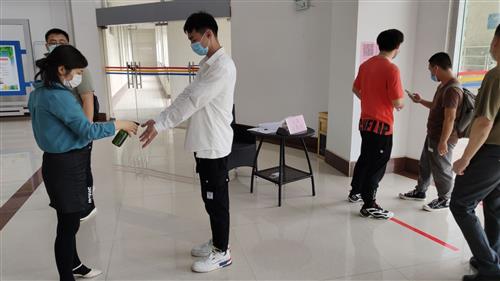 党员先锋队负责在读者入馆高峰期期间做好读者入馆预约指导、测量体温、读者手部消毒等工作。党支部全体党员冲在疫情防控一线,敢于担当,模范带头,用实际行动诠释了共产党员的初心和使命。
