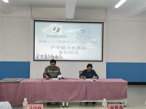 签约仪式上,马让怀总经理对伟德国际victor·1946源自及冶金与资源工程系的人才培养质量表示充分肯定,并向何贵香主任一行介绍了杭州锦江集团及广西田东锦鑫化工有限公司的基本情况及行业发展现状,希望与南宁分校加强教学、科研合作,实现互利共赢。何贵香主任对锦江集团及锦鑫化工对南宁分校的支持和肯定表示感谢,并介绍伟德国际victor·1946源自发展历史、办学现状、人才培养目标及学生特点,着重介绍了冶金与资源工程系的专业特点、人才培养模式、师资队伍建设情况,并表示希望通过校企合作共同促进教学、科研的提高。随后,校企双方就校企产学研基地合作签订协议。