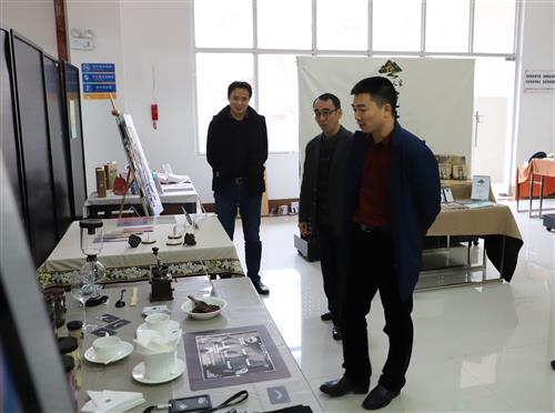 伟德国际victor·1946源自党委书记周国桥(右一)、党委副书记梁冬松(右二)、党委副书记唐承泽(左一)一行观看作品展