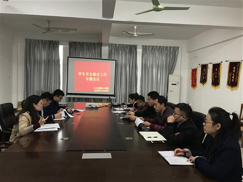为贯彻落实《广西壮族自治区安全生产委员会办公室关于印发自治区成立60周年庆祝活动安全生产工作方案的通知》(桂安委办〔2018〕108号)等文件精神,11月20日中午,土木与测绘工程系在物化楼406会议室召开学生安全稳定工作专题会议。该系党总支书记黄文学、党总支副书记邹凤婵、团总支书记冯光帆和全体辅导员参加会议,会议由该系党总支副书记邹凤婵主持。