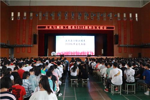 9月9日上午,土木与测绘工程系在空港校区体育馆召开2018级师生见面会。土木系主任刘茂军、党总支书记黄文学、党总支副书记邹凤婵、团总支书记冯光帆,以及该系2018级新生班主任和全体辅导员出席大会。