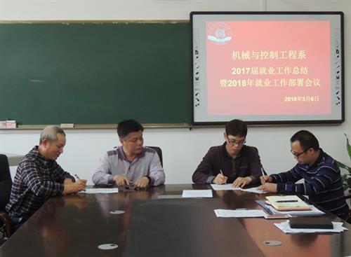 签订《机械与控制工程系2018届毕业生就业工作目标管理责任状》
