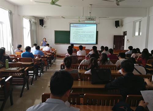 培训中,现代教育技术中心贾东云副主任解读了2018年广西职业院校信息化大赛的通知内容,赏析了全国职业院校信息化教学大赛优秀作品,强调了信息化教学大赛的比赛日期、大赛体系、教学设计、课堂教学等各赛项的评分标准、比赛方式、参赛要求等,并通过一些实际案例简明扼要地强调了设计中的注意事项。针对比赛规则、政策,结合土木系教学情况及设备,贾副主任建议土木系教师认真领会不同赛项在信息化环境下的重难点。