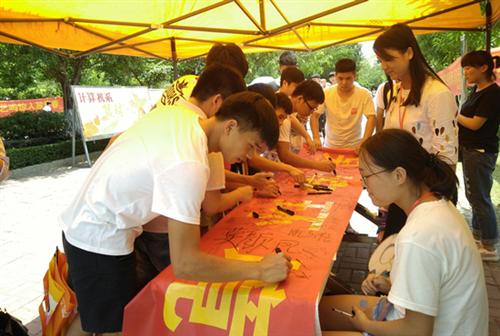 在行健路上,团总支学生会及环境相关专业的同学通过向广大同学开展环保宣传、文明宿舍展出和发放环保小常识等方式呼吁大家建设干净整洁的舍区环境。活动得到了广大同学的积极响应,大家表示建设美丽家园需要人人参与,并纷纷通过签名方式承诺要自觉养成文明习惯,做一个讲文明的大学生。