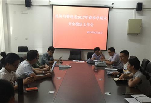 6月15日下午,经济与管理系在空港校区景明楼210会议室召开安全稳定工作会议。该系领导班子及全体辅导员参加会议,会议由该系党总支书记梁勤主持。