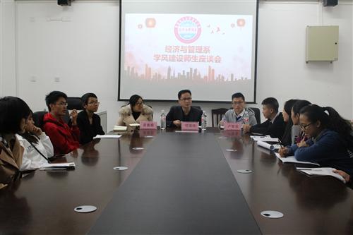 11月24日下午,经济与管理系在空港校区景明楼210会议室、上善楼410教室召开学风建设师生座谈会,该系党总支副书记黄薇薇、副主任劳国炜,辅导员卢智泉老师出席座谈会。20余名本科学生、100余名专科学生代表参加了会议。会议由黄薇薇副书记主持。