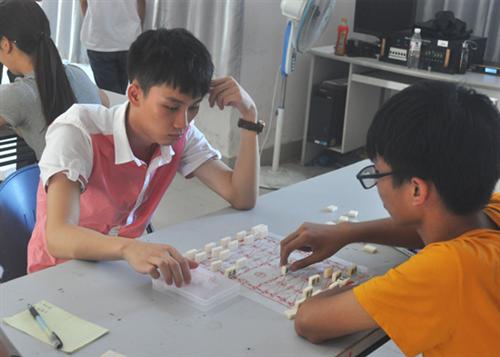 此次比赛共设有五子棋、军棋、跳棋、飞行棋和象棋五项棋种。比赛历时半个月,选手们经过初赛、半决赛、决赛的层层选拔,最终进入总决赛。总决赛比赛场面,选手们或单手托腮、或双眉紧锁、或搔头切齿,占上风的选手步步紧逼,落后的顽强反击,现场气氛凝重。
