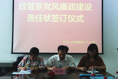 会上,经管系党政主要负责人和各教研室主任等签订了2016年党风廉政建设责任状。