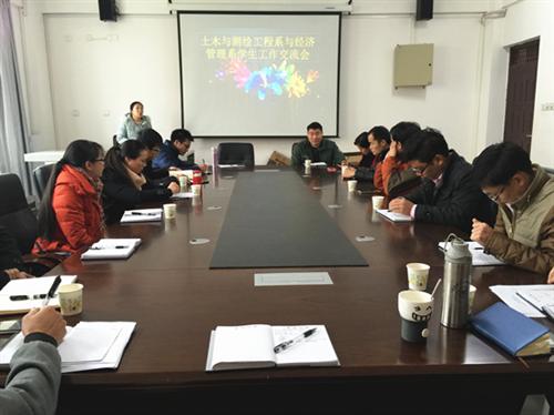 1月15日下午,土木与测绘工程系、经济与管理系在空港校区景明楼210会议室共同召开学生工作交流会。分校学生工作部主任韦宁照,土木系党总支书记韦国才,经管系党总支书记梁勤,分校学生工作部副主任罗勇,土木系党总支副书记黄文学,经管系副书记黄薇薇等领导出席了会议。两系全体学工人员参加了会议。