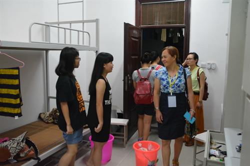 冶金系党总支书记陆宏标(左二)走访男生宿舍