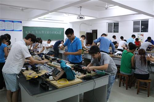 这堆仪器对我来说:SO EASY!--电子仪器操作使用大赛 老师说我的电路板很帅!--电子焊接大赛 图案生成中……--电气控制线路及绘图大赛 哈哈!我快接好咯!--电气控制线路安装与调试大赛 老师对我说:矮油,不错哟--单片机程序设计与调试大赛 嗯,这个可以--单管放大电路调试大赛 电气节里学生穿着自制的“天使之翼” 学生会秘书部制作的“摇钱树” 学生会学习部制作的“慧智园系列”景观 学生宿舍代表制作的LED“桃花树”