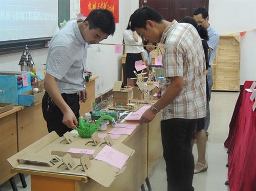 为了提倡环保低碳,以实际行动体现当代大学生的节约资源、保护环境的社会责任感,机械与控制工程系在5月8日于启智楼203室开展利用生活废弃品为原材料制作DIY作品设计大赛评比活动。保卫工作部副主任邹志友、学生工作部副主任石有总、该系党总支副书记刘术刚、后勤工作部郭励老师到场担任本次评比活动的评委。