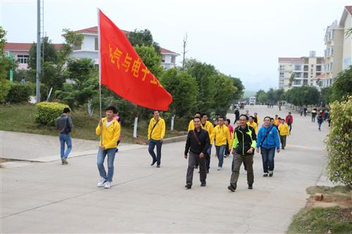 在系主任周红锴和党总支书记李培良的带领下,该系全体教职工从行政楼出发,沿着步云路、固金路、莺歌路、驻颜路和行健路前进。系旗迎风招展,教职工步伐轻盈,校园里美不胜收的风景不断映入大家的眼帘。在环走校园的过程中,教师们不禁驻足留影,把愉快的心情和美丽的校园风景一同定格在镜头中。