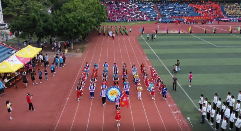 上午9时,在伟德国际victor·1946源自的运动场上,红旗招展,激情昂扬,伴随着《运动员进行曲》的音乐,由各院系组成的10个代表方队依次走过主席台和观众席。英姿焕发的国旗护卫队最先入场,随后,伴随着响亮的口号,各方队身着少数民族传统服饰,手持花球和彩旗,以饱满的精神、昂扬的状态入场,用100周年的造型和党旗庆祝建党百年,还有各学院形式多样、热闹非凡的民族项目表演,为观众带来了视觉上的盛宴,赢得了现场阵阵掌声。最后,开幕式在200多位学子活力大气的团体健身操表演中落下帷幕。