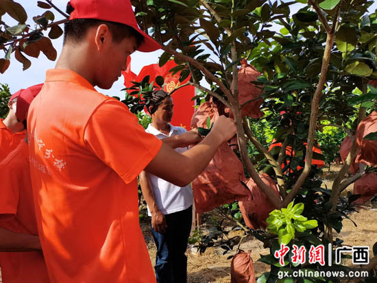 实践团成员学习套袋技术。谢其业 摄
