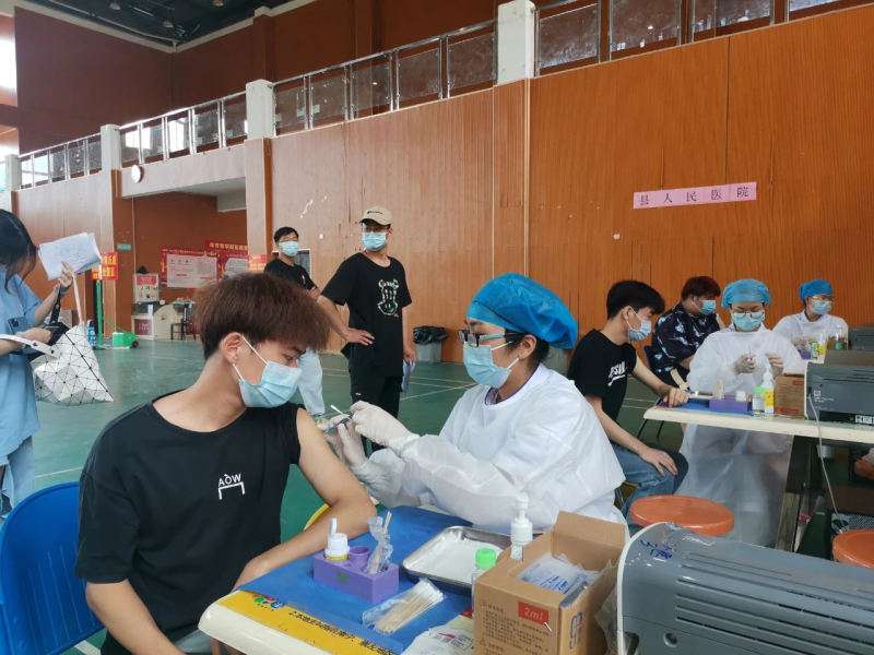 为加快新冠疫苗接种进度,5月19日,我县全面启动大规模新冠疫苗接种进高校工作,为在校大学生和教职员工接种新冠疫苗,共筑校园防疫屏障。