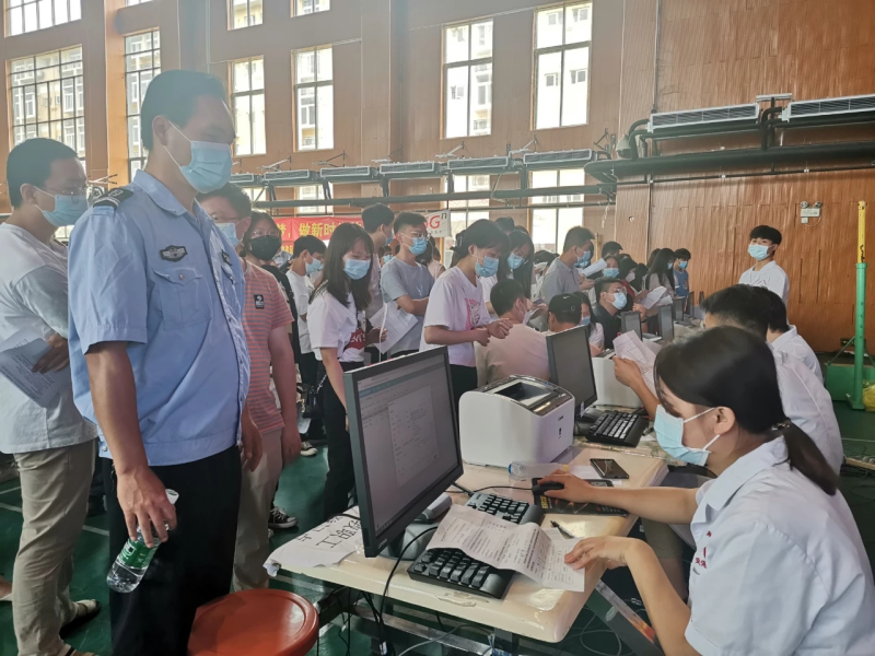 图为志愿者帮助师生们进行个人信息的填写与核对