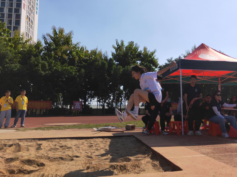 11月3日下午两点半,女子组跳远比赛如期而至。运动员们站在起跳线前,沉静自若,屏息敛声,时刻准备着展现自己在赛场上的闪亮瞬间。