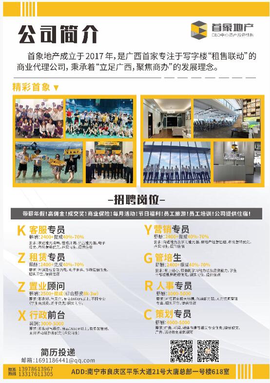 ●自成立以来本着「立足广西,聚焦商办」的首象使命,服务于世界500强、上市公司的主要一手项目。