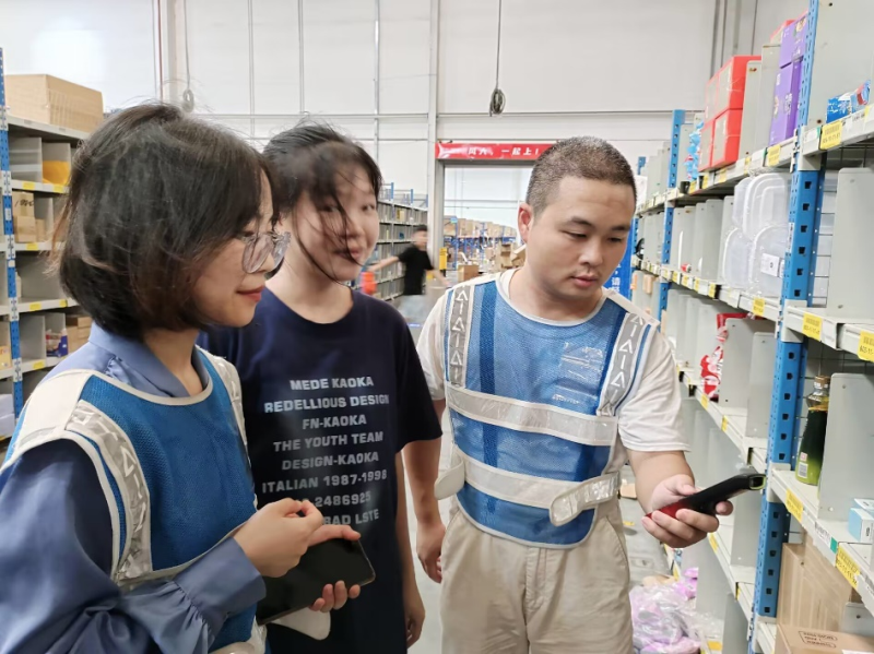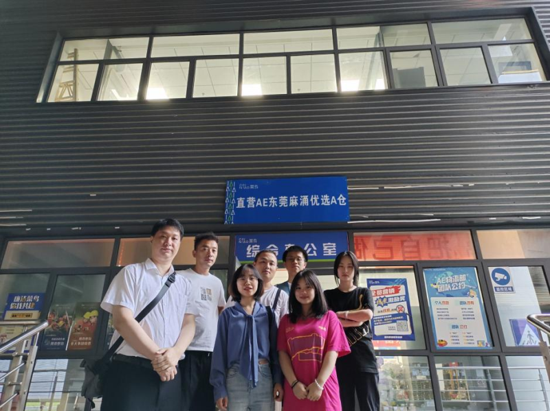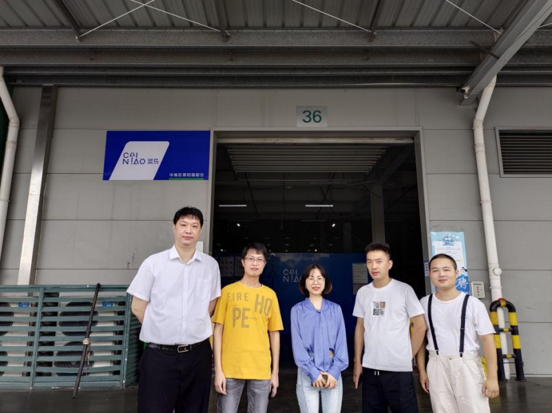 现代物流教研室王大昕、张玲、文皓程与学生代表在东莞麻涌仓
