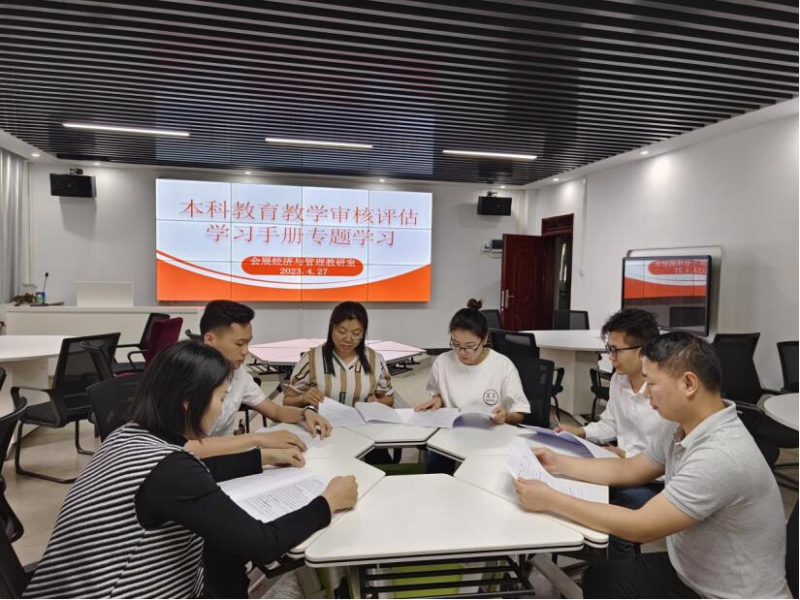 4月27日上午,会展经济与管理教研室在会展专业实训室2103开展《本科教育教学审核评估学习手册(教师版)》专题学习会议,教研室全体成员参加本次专题学习会议。