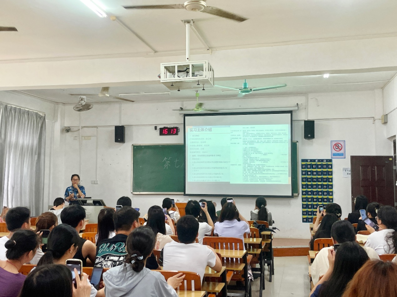 2019级陈铭杰、2020级卫芷诺两位学生代表从自身实习单位情况、实习岗位职责、实习工作经历、收获、面试经验等多方面向在场的学弟学妹进行了分享。他们希望学弟学妹们能够在即将开始的实习工作中树立良好形象,强化实践意识,提升专业技能,得到全方位的锻炼。
