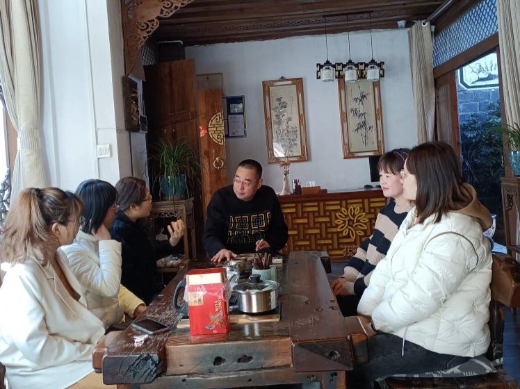 教师团队与花筑•凡途观景客栈的主人在交流研讨