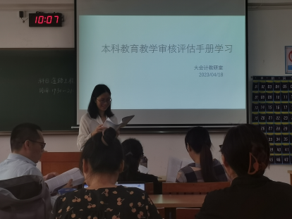 为进一步推进本科教育教学审核评估工作,4月18日,经济与管理系会计教研室在空港校区6205教室开展本科教育教学审核评估手册学习。