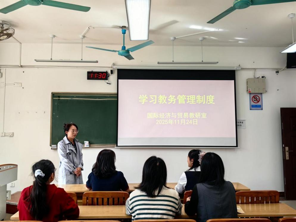 为进一步规范教学管理、提升教师教学能力,近日,国际经济与贸易教研室组织全体教师开展教学文件专题学习活动,围绕《伟德国际1946生修业年限管理办法》《伟德国际victor·1946源自教学工作规范》《伟德国际1946教材管理实施细则》《伟德国际victor·1946源自学生参加各类竞赛管理办法》等教学制度文件,以及新版人才培养方案、教学质量评价标准等核心文件进行系统学习与深入研讨。