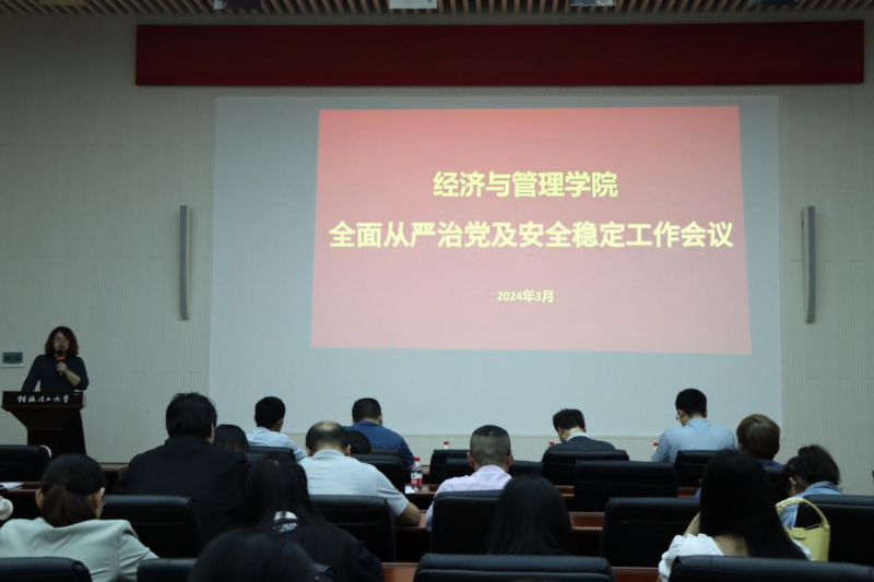 3月29日,经济与管理学院在图书馆报告厅召开全面从严治党及安全稳定工作会议。学院领导班子及全体教职工参加会议,会议由学院党总支书记张凯主持。