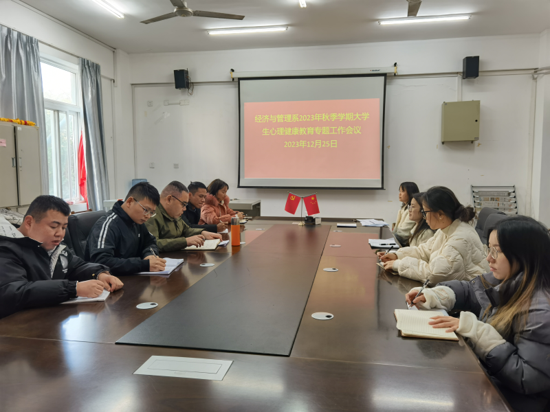 为进一步做好经济与管理系大学生心理健康教育工作,12月25日下午,经济与管理系在7210会议室召开2023年秋季学期大学生心理健康教育专题工作会议。经管系党总支副书记兼学工组长陈曙钰、团总支书记陆吉瑞、心理健康教育与咨询中心专职教师黄霞妮及全体辅导员参加会议。会议由系党总支副书记兼学工组长陈曙钰主持。