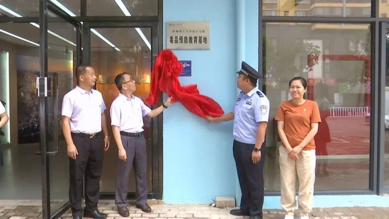 梁冬松、蔡贺俊、凌宛萍等领导、嘉宾共同为毒品预防教育基地揭牌。