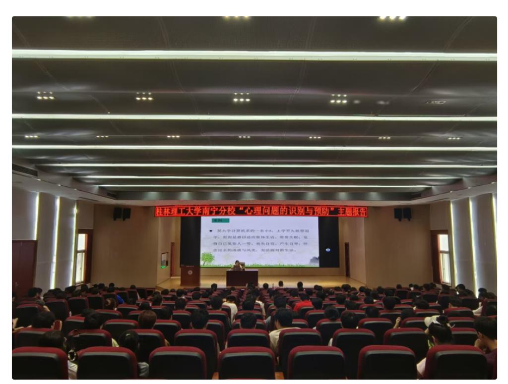 揭牌仪式结束后,张春林副院长一行还参观了心理咨询工作室、桂南民俗博物馆、国防教育基地、廉政文化馆等。心身医学科李桂梅主任在图书馆报告厅,为学生工作部、团委、全体学工人员、大学生心理健康教育课授课教师、各系班主任代表,作题为“严重心理问题(精神障碍)的干预与治疗”主题报告。精四科主任韦容峥在启智楼8408多功能报告厅,为各系心理委员、学生干部代表,作题为“心理问题的识别与预防”主题报告。同时在分校心理健康教育与咨询中心开展义诊活动,为需要心理咨询的同学解开心里的矛盾,对存在的心理问题进行早期干预与治疗。