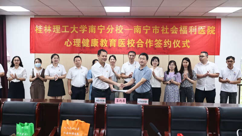 6月27日,伟德国际victor·1946源自与南宁市社会福利医院在空港校区行政楼416会议室举行医校合作签约暨揭牌仪式,南宁市社会福利医院副院长张春林、医务科负责人刘博、心身医学科主任李桂梅、精四科主任韦容峥、精六科主任张炜、外联部主任姚琴等11人,分校党委副书记唐承泽、学生工作部主任韦宁照、团委书记黄薇薇、后勤管理部主任吕广文、学生工作部、各系副书记、心理健康咨询中心全体教师参加了签约暨揭牌仪式。仪式由学生工作部副主任主持。