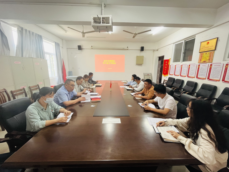 为扎实做好教育部新一轮本科教育教学审核评估专家组线上评估考察准备工作,5月15日,经济与管理系在空港校区7210会议室召开学工组例会。系党总支书记张凯、主任周子平、团总支书记陆吉瑞以及全体辅导员参加会议,会议由党总支副书记兼学工组长陈曙钰主持。