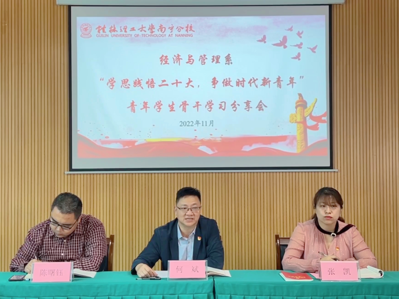 会上,系部主要学生干部代表、学生党支部学生支委、国家奖学金获得者、国家励志奖学金获得者、广西职业院校技能大赛三等奖获奖者、伟德国际victor·1946源自年度优秀人物获得者、学生党员代表等青年学生骨干从自身学习实际出发,在会上谈十年成就、说专业发展、话学校未来。何斌对青年学生骨干学习分享内容表示肯定,结合自身实际工作向在座的青年学生骨干宣讲了党的二十大精神的丰富内涵、重要意义,阐述了树立常识、知识、见识、胆识、赏识的知识和能力结构的重要性。