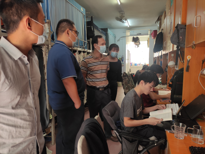 在检查中,我系领导班子细心查看学生线上课堂学习情况,并亲切地与学生进行交谈,了解学生在疫情防控时期线上学习、网络保障等方面的情况,叮嘱学生要严格遵守学校防疫要求,配合学校、学院相关防疫工作。同时嘱咐学生要保持宿舍卫生清洁、勤洗手,多通风,进入公共场所要佩戴好口罩,做好个人防护,按时完成每日健康打卡等。鼓励学生要克服疫情带来的诸多不便,对突发困难、问题及时向老师反映,积极与老师沟通,共同保障线上专业学习质量。