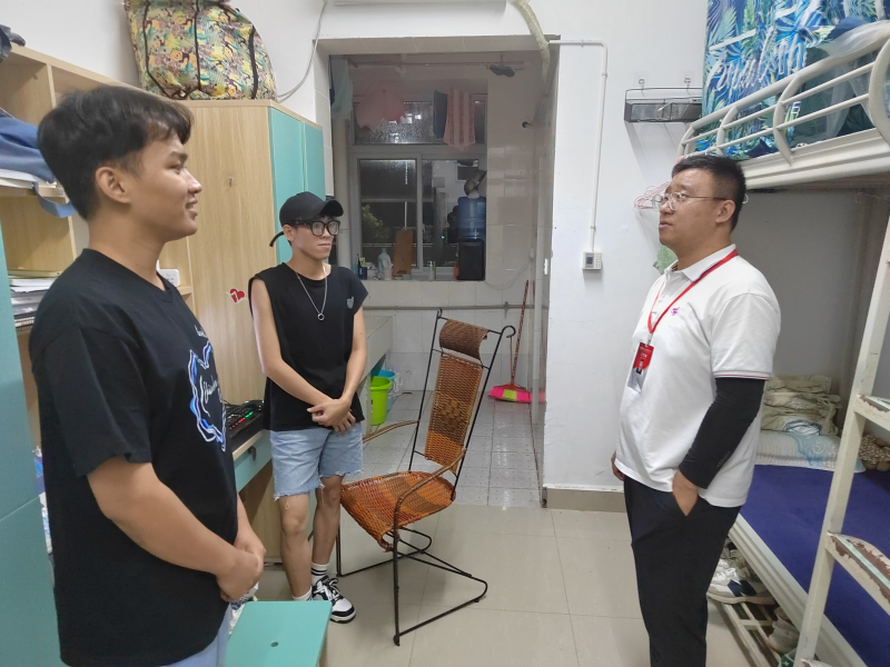 在检查宿舍的过程中,陈曙钰老师检查学生的返校情况并对宿舍进行全面检查,重点检查了用电、用水的安全及宿舍卫生情况。宋春雨老师认真核查宿舍人员变化情况,围绕返校情况、生活状态、卫生情况等问题与同学们进行了深入交流,他叮嘱同学们一定要重视安全、卫生等情况,树立优良寝风。