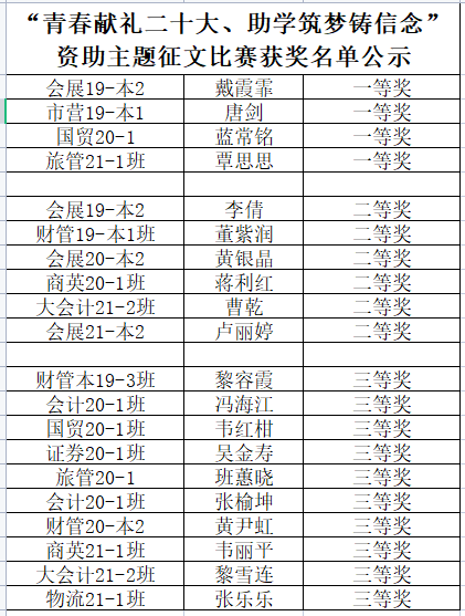 经济与管理系“青春献礼二十大 助学筑梦铸信念”资助主题征文比赛获奖名单公示