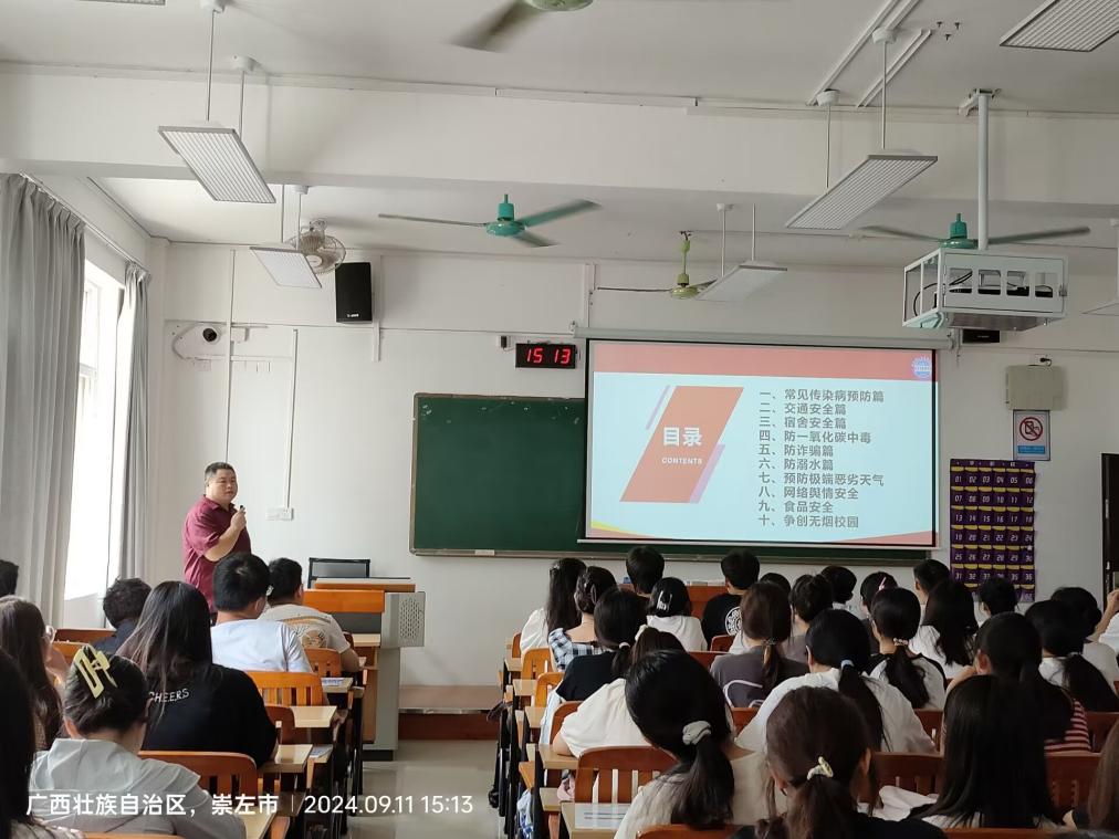 新生入学教育“必修课”:安全及爱国主义法治教育。为有效开展新生法治教育,经济与管理学院通过主题班会系列形式组织学生进行“安全警钟长鸣 生命之花常开——安全知识教育”、“预防电信诈骗、共筑平安校园”防诈骗警示教育、爱国主义教育等知识学习,并以具体案例帮助学生进一步增强防诈、安全意识。