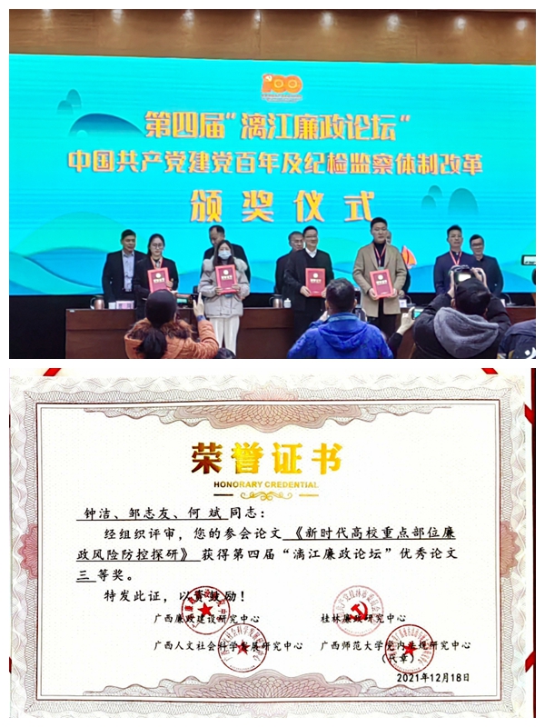 伟德国际victor·1946源自在第四届“漓江·廉政论坛” 学术交流活动中喜获佳绩