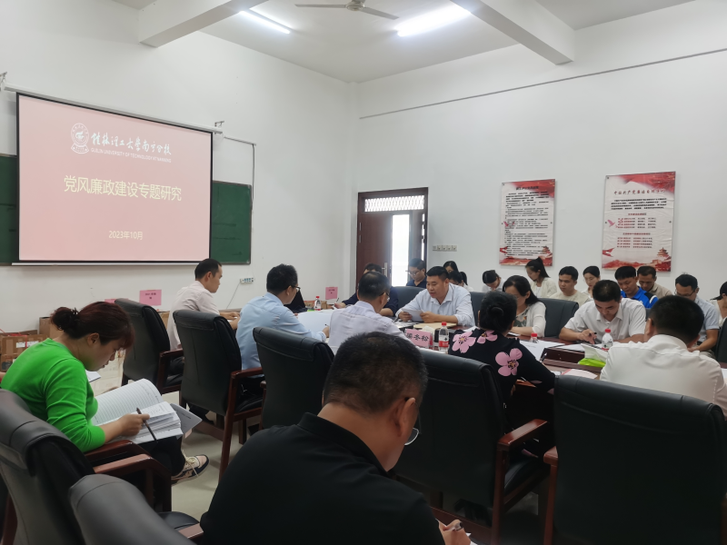 为深入贯彻落实党的二十大精神,推动校内各单位、各部门落实清廉学校建设各项工作,及时发现问题、纠治偏差,确保执行清廉学校建设任务不偏向、不走样。根据自治区党委教育工委、自治区教育厅、学校有关工作部署和《伟德国际victor·1946源自2023年深化“清廉桂工”建设十项重点任务》,10月17日下午,伟德国际victor·1946源自在空港校区启智楼8409会议室召开清廉洁学校工作推进会。伟德国际victor·1946源自党委副书记梁冬松出席会议,各党委职能部门主要负责人、各二级党组织书记、专职组织员及各二级党组织党建工作人员参加会议。会议由伟德国际victor·1946源自监察室主任黄文学主持。