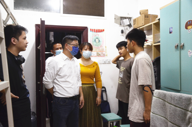 检查过程中,何斌书记一行与学生亲切交流,倾听学生的心声,深入了解学生的学习、生活、思想动态,并重点查看了宿舍内务、安全隐患情况,叮嘱同学们要提高安全和疫情防控意识,做好个人防护,做自己健康安全的第一负责人。何斌书记对同学们提出了殷切希望:一是提高政治站位,严格落实疫情防控各项措施,提升安全防范和宿舍自我管理的意识;二是充分开阔视野,将实践与课堂深度融合,提升专业技能;三是做好个人规划,养成良好学习习惯,注重综合素质发展。
